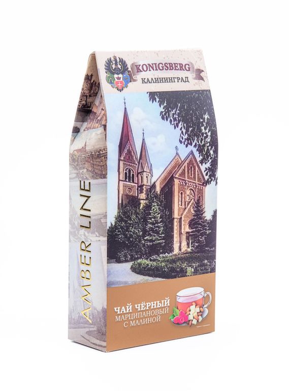 Марципановый чай с малиной ароматизирован натуральными маслами, листьями малины. Особый фруктово-ягодный вкус достигается за счет ягодок малины цедры шиповника, черной вишни, лепестков роз, миндаля и ароматом спелой малины и ванильных сливок. Заваренный напиток распространяет летний ягодный аромат с душистыми нотками. Вкус сбалансированный, с преобладающими сладкими нотками земляники и спелой малины.